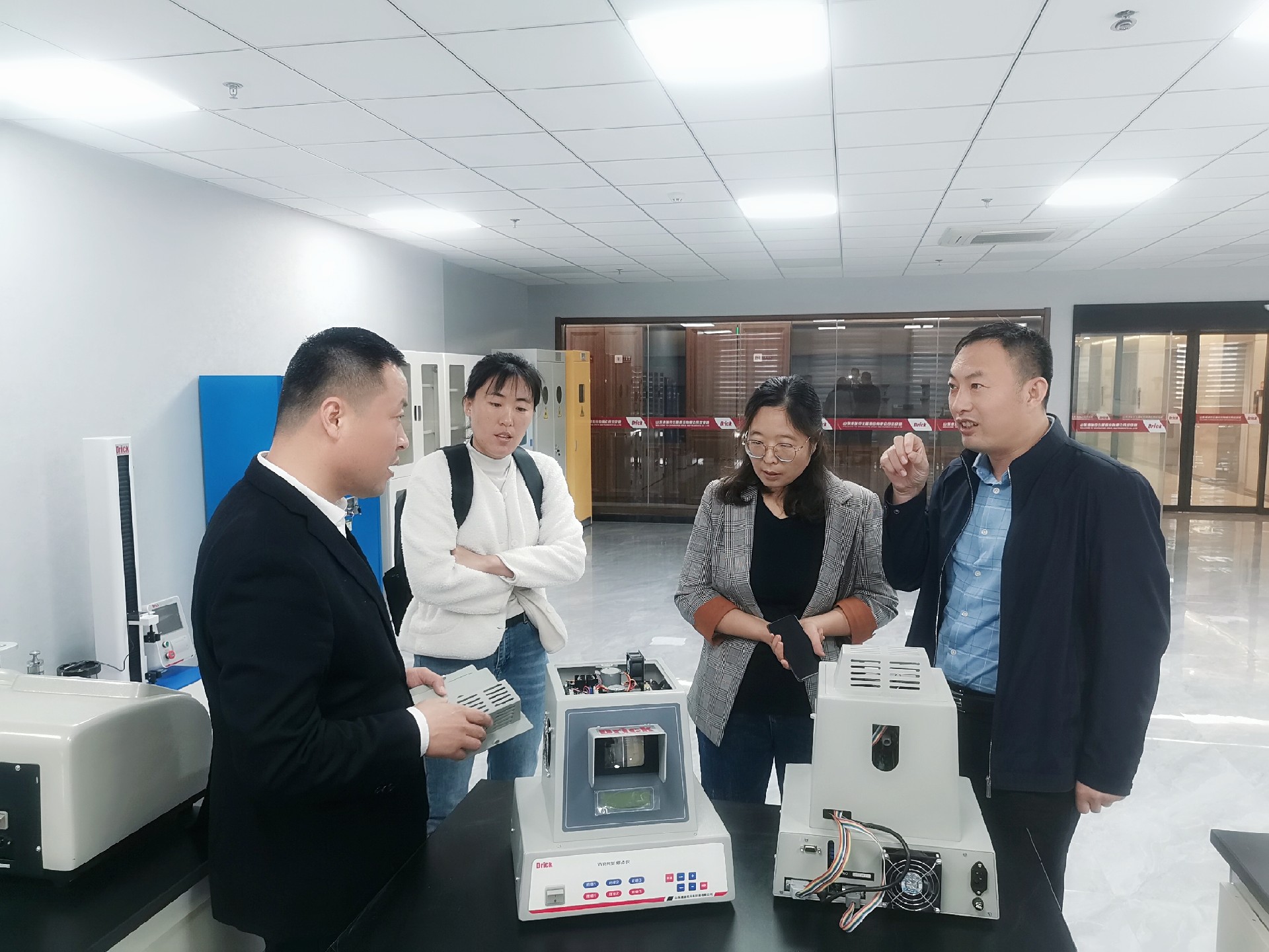 孔書記一行先后參觀了德瑞克技術(shù)研發(fā)中心、商務(wù)辦公區(qū)、產(chǎn)品展廳等,對(duì)公司發(fā)展、產(chǎn)品研發(fā)等情況進(jìn)行詳細(xì)了解。董事長(zhǎng)對(duì)展廳內(nèi)陳列的各類實(shí)驗(yàn)室檢測(cè)儀器做了詳細(xì)介紹。參觀結(jié)束后,雙方就未來加強(qiáng)技術(shù)合作、人才培養(yǎng)等方面交換意見并達(dá)成共識(shí)。